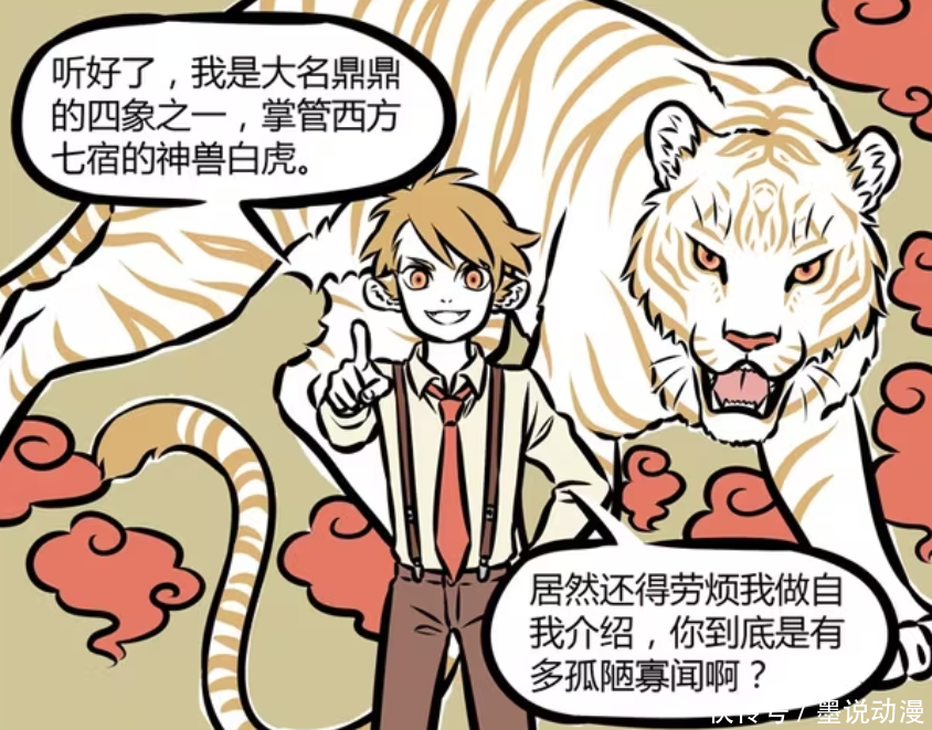 白虎世界皆很熟谙,他是四象之一,亦然四大神兽之一。掌管西方七宿,昴日星君亦然他的部下。别看白虎看起来仅仅小男孩相貌,一朝造成成东说念主相貌,哮天皆得被吓出原形。九月不虞识白虎也泛泛,哪怕是人所共知的哪吒,在他第一次见九月的工夫,九月也莫得认出他。
