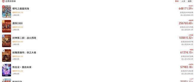 六部的票房排行诀别是《哪吒2魔童闹海》64.8亿、《唐探1900》25.6亿、《封神第二部:战火西岐》10.5亿、《射雕枭雄传:侠之大者》6.1亿、《熊出没重启翌日》5.7亿、《蛟龙步履》3.2亿。
