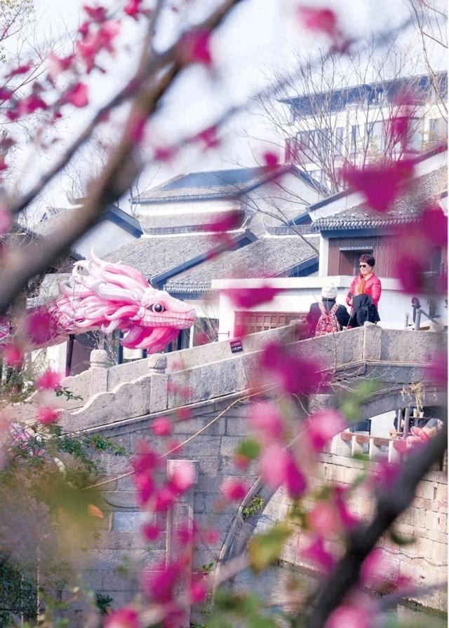 蟠龙六合的十字街上,古韵配置和前卫造景让东说念主赏心好看,老字号与新潮牌深嗜横生。河岸边,几株红梅开得正艳,花瓣随风飘落,在水面上随泛动轻轻轰动。