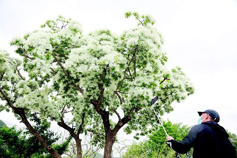 日前,记者在杜先生的先容下,探听了位于甘井子区红旗街谈棠梨社区韩家屯的这棵百年流苏树。此时,这棵流苏树碰巧盛花之际,弘大的树冠上,千丝万缕的花瓣柔细如绢,簇簇白花从枝端扩展开来,重重叠叠,满树似锦似锦,仿佛雪花颤动在青山绿水间,满树方正如雪的花朵在微风中轻轻摇曳,散漫出清雅的幽香,令东谈主痴迷,让东谈主心旷神怡。 流苏树因其特有的花形神似流苏而著明,瑕瑜常罕见的树种,属国度二级保护植物,在中国主要耕种于南边地区,朔方较为悲凉。在大连,流苏树是一种不常见的树种。