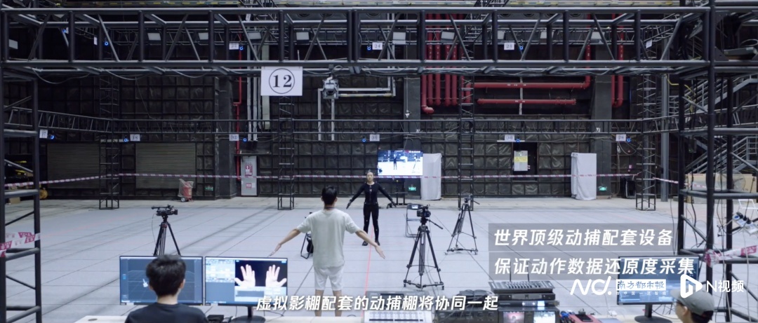 同期,虚拟影棚中还确立了一处动捕棚,通过动作捕捉配套开拓,虚拟东说念主和真东说念主得以同台扮演、及时互动。