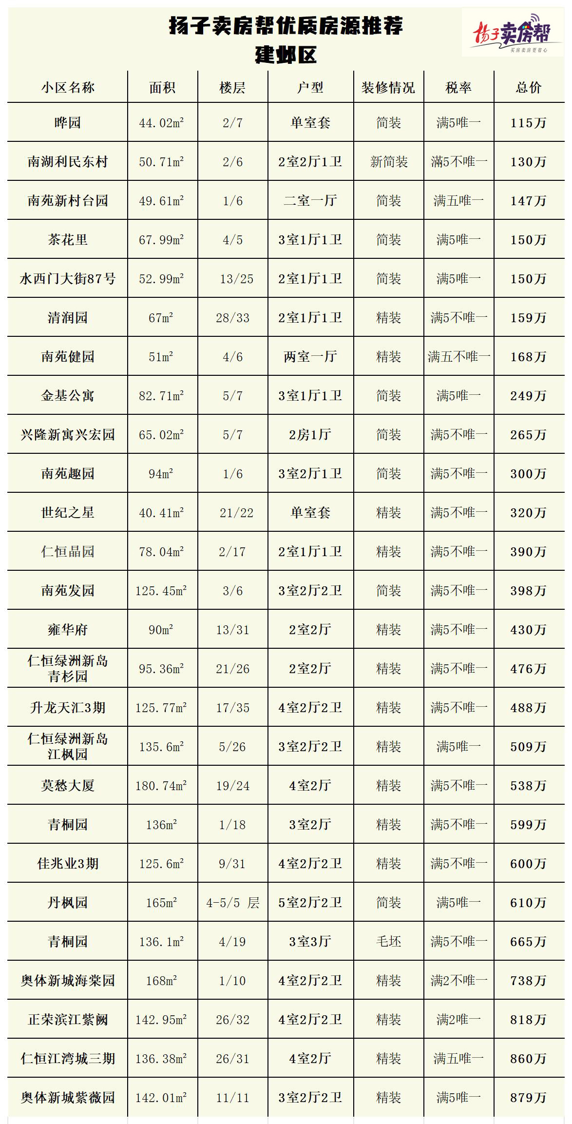 对上述房源感兴味的读者,请速即关系“扬子卖房帮”,预约免费看房,成交零佣金哦!