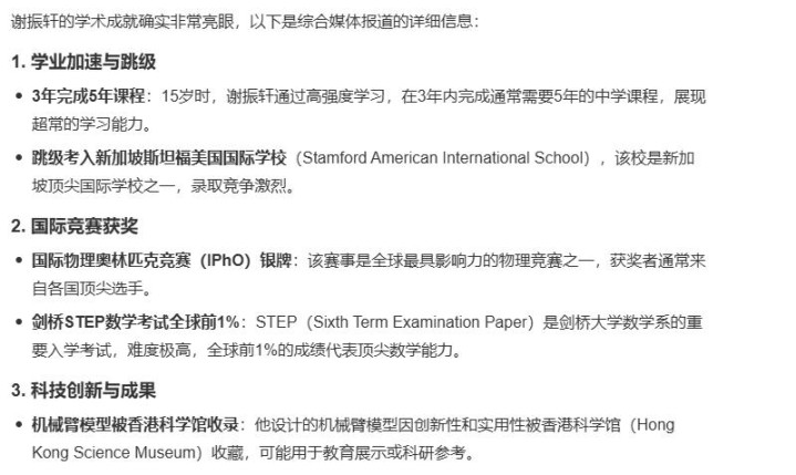 据联系媒体报说念称,谢振轩在15岁时用3年时候完成5年课程,并跳班考入新加坡斯坦福海外学校。