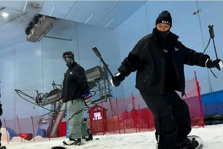 谢霆锋本人便是滑雪爱好者,曩昔常去日本滑雪,还指引过谢振轩滑雪手段。