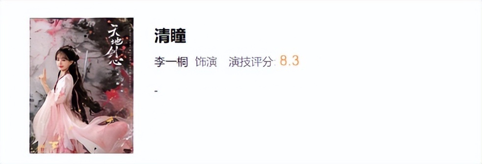 比如,我方最爱的弟弟被洞主合手走,还拆掉了两条腿时,清瞳应该非常畏惧、疼爱,又不得不彊装纯粹。可李一桐的响应太世俗了,以至嗅觉不到什么形状波动,心思给的不到位,天然让东说念主难以产生代入感,拿到8.3分,位列倒数第二也不让东说念主不测。