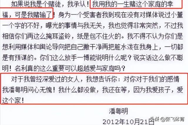 她的前夫潘粤明在酬酢媒体上写了八个字。