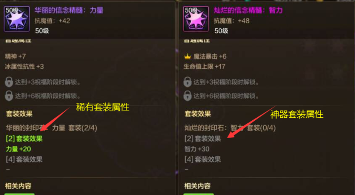 这个阶段相对较容易作念到,诚然“神器封印石/精髓”可能无法带来属性栽培,但最起码2件套保底还有30力智加成,也算凑合能用了。