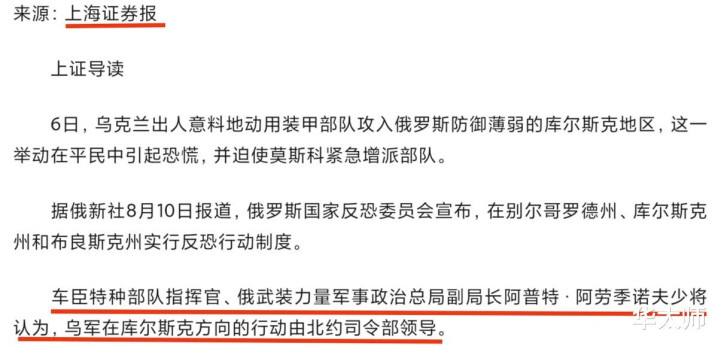 而在俄军的眼里,在前哨节节溃退的乌军,是不行能有足够的军力来进军俄罗斯原土的。因此,据塔斯社8月9日报谈,车臣特种部队开采官、俄武装力量军事政事总局副局长阿劳季诺夫以为,乌军在库尔斯克州进行的伏击行径,是由北约司令部指导的。