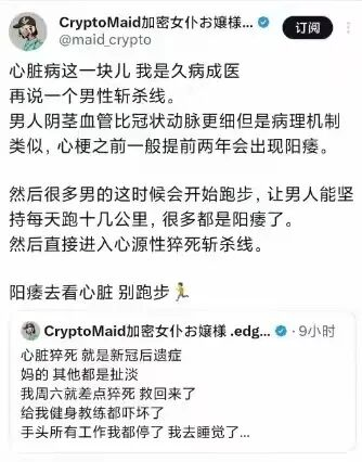 反过来说,莫得勃起功能扼制,也可能因为腹黑发生暴毙。当全身血管有点问题,但还没被“堵死”的时候,可能冠状动脉内部的小斑块已而离散形成血栓,莫得预警就出现了心肌梗死。另外,许多冠心病除外的腹黑病,不堵血管,但也会形成不测,比如肥厚型心肌病、冠状动脉荒谬及多种心律失常。