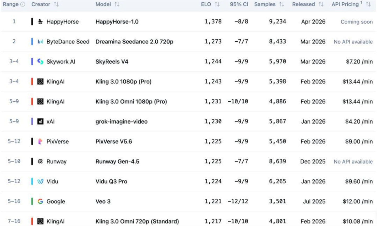 4月7日,一个叫HappyHorse-1.0的视频模子空降Artificial Analysis盲测榜单,文生视频、图生视频双双登顶,Elo积分甩开第二名的字节Seedance 2.0跨越100分。