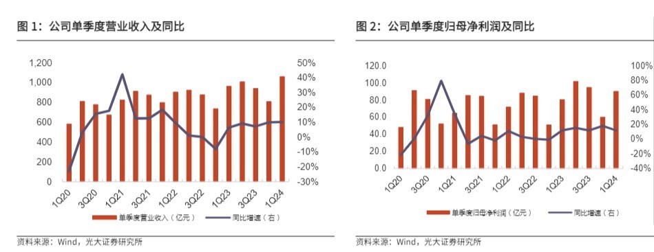 这是频年来困扰国内家电企业的主要问题。从光大证券给出的公司单季度营收、净利润增长数据来看,两项方针均呈现趋缓态势。公司营收同比增长率从2021年的20%下滑到2023年的8%;净利润同比增长率也从2019年近20%下滑到2023年的14%。
