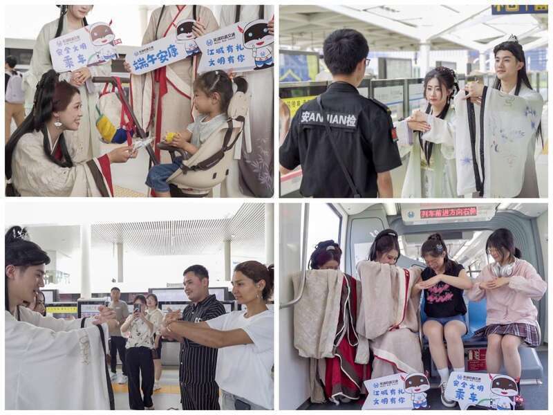 客岁端午节时辰,芜湖单轨还组织开展了“江城有礼 汉服有约 时髦有你——穿汉服行汉礼”当作。公司后生志愿者身着传统汉服,与车站节日在岗职工及乘客亲密互动,现场教悔汉礼范例,发扬传统礼让文化的同期,疏通乘客安全时髦搭车。