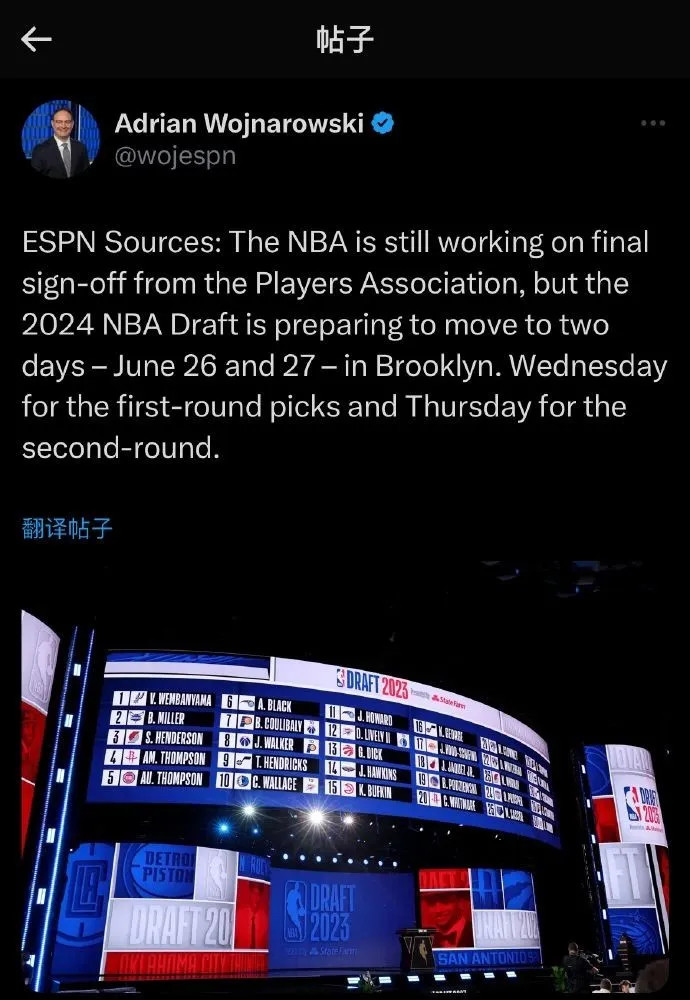 本年选秀大会初度分为两天进行——6月27日(首轮)和28日(次轮)。